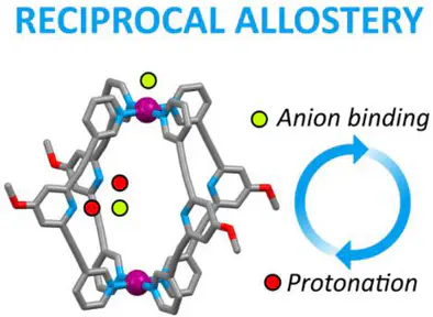 Reciprocal allosteric regulation, where binding events influence each other simultaneously, is a key target for supramolecular chemists designing biomimetic systems. Platinum(II) lantern-shaped cages, formed from a series of ligands bearing central protonatable sites of varied basicity through rational tuning of the backbone, featured nuanced dual action host-guest chemistry. This reveals the first example of reciprocal allostery in a supramolecular system, between protonation and anion binding. Switching studies were conducted using acid/base and silver/chloride stimuli, with single and multi-anion systems.